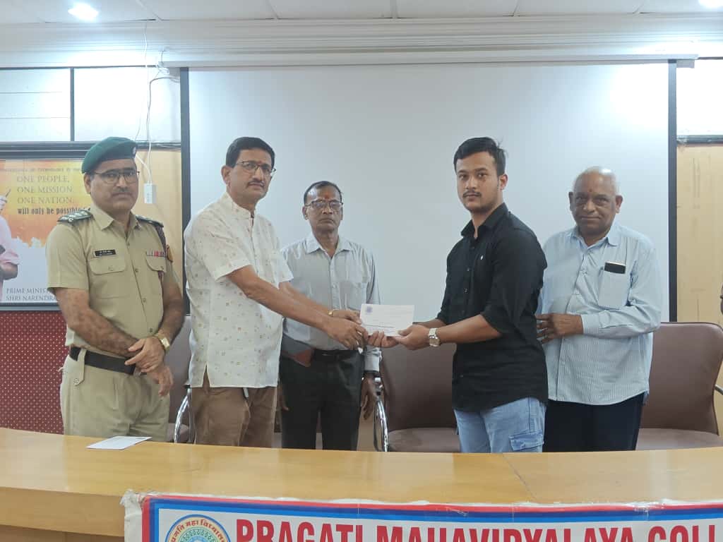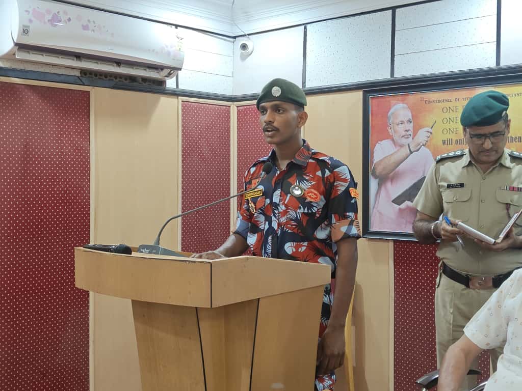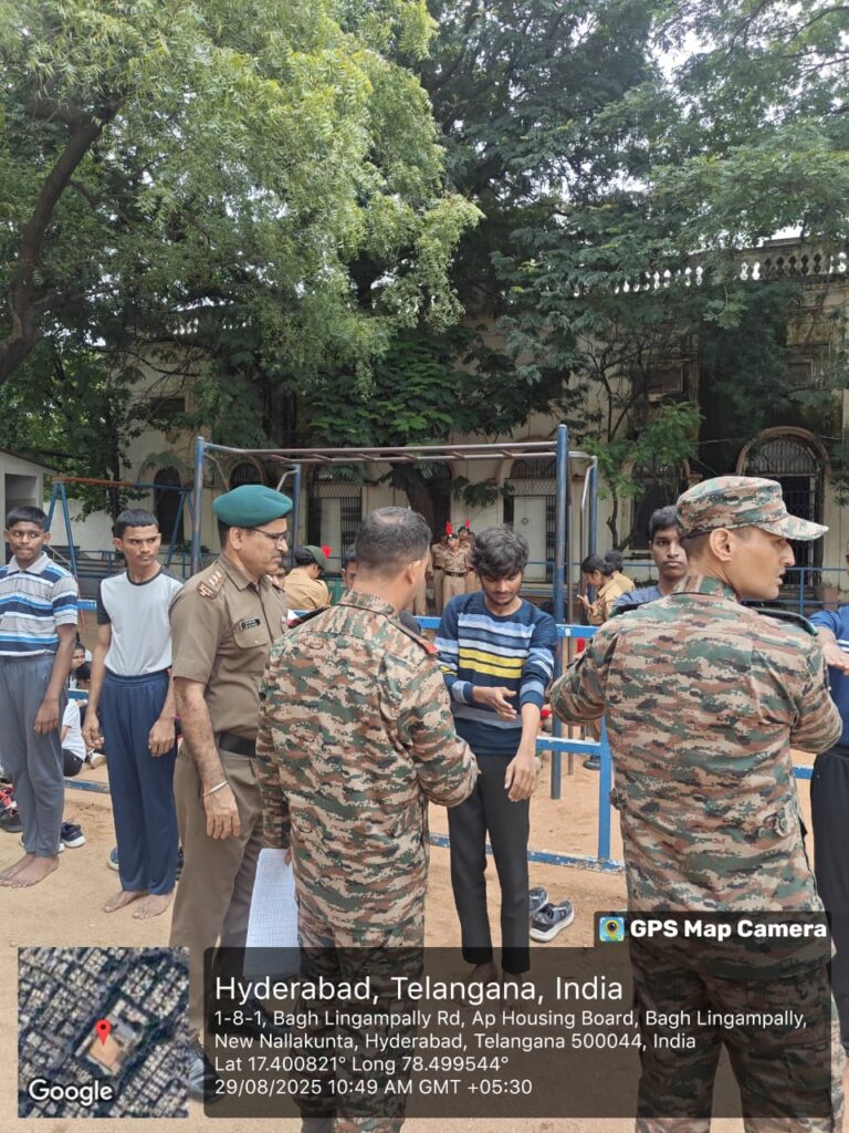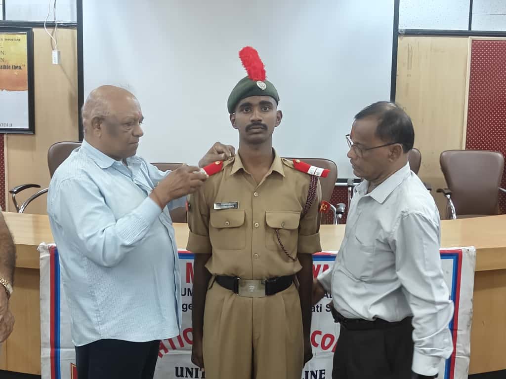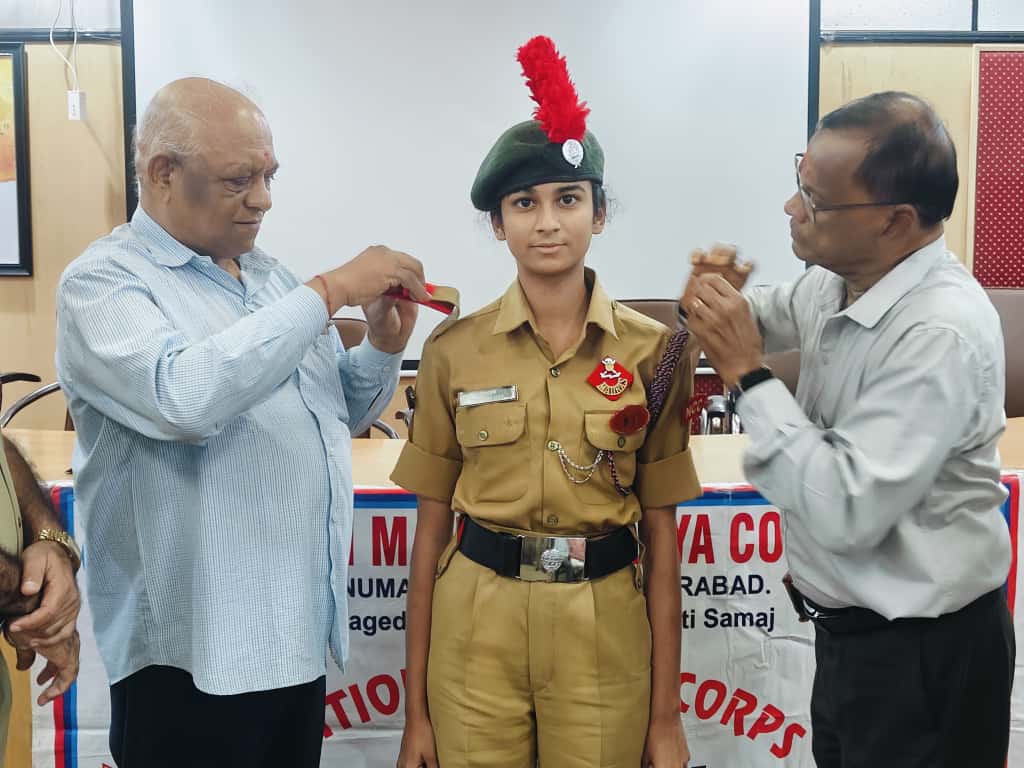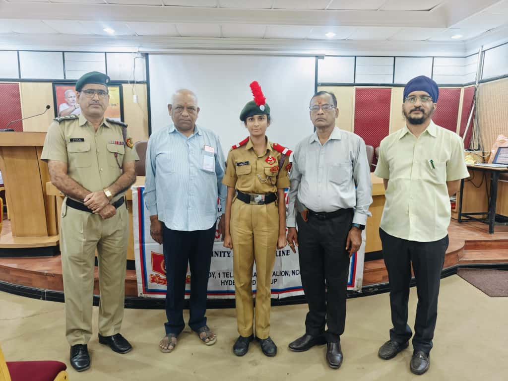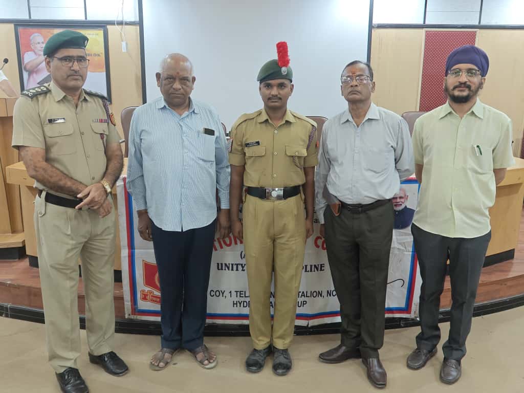 JUO M CHEKRI who attended prestigious All India Thal Sena Camp, New Delhi-2025 was felicitated by 4/1 COY, 1 Telangana Bn NCC, PMV College. Correspondent Shri Gopal Patel ji was attended as Chief guest.