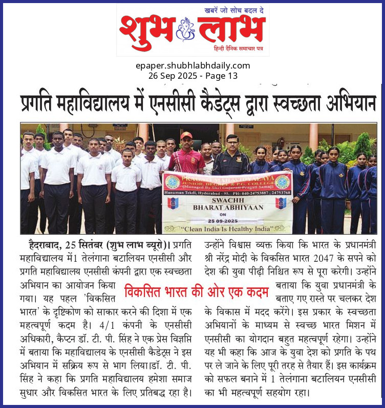 Pragati Mahavidyalaya Degree College NCC selections for the trg year 2025-26